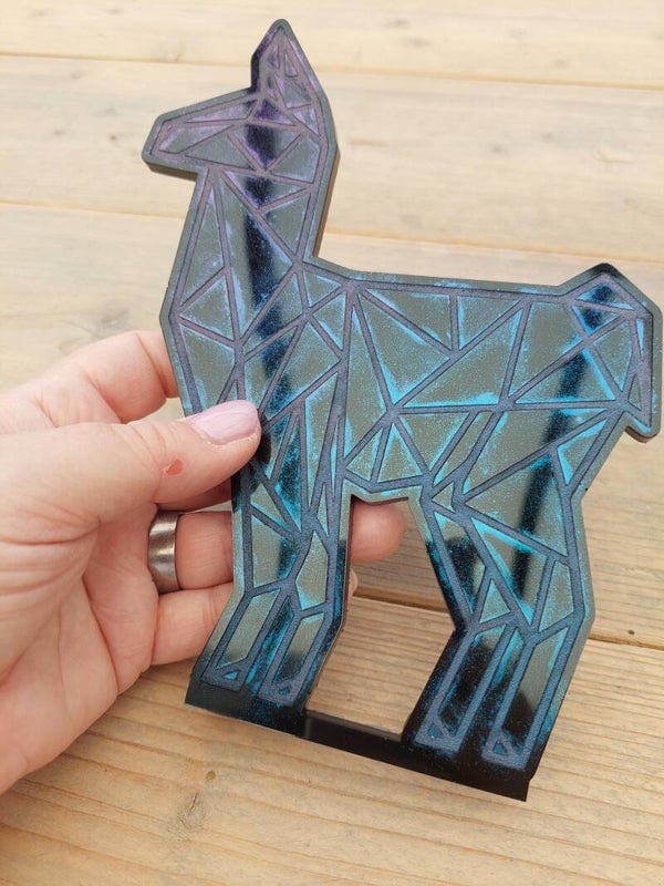 Deze lama met geometriche details is een leuk en schattig exemplaar om je interieur een speelse toets te geven!