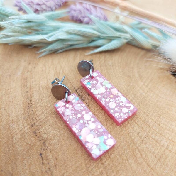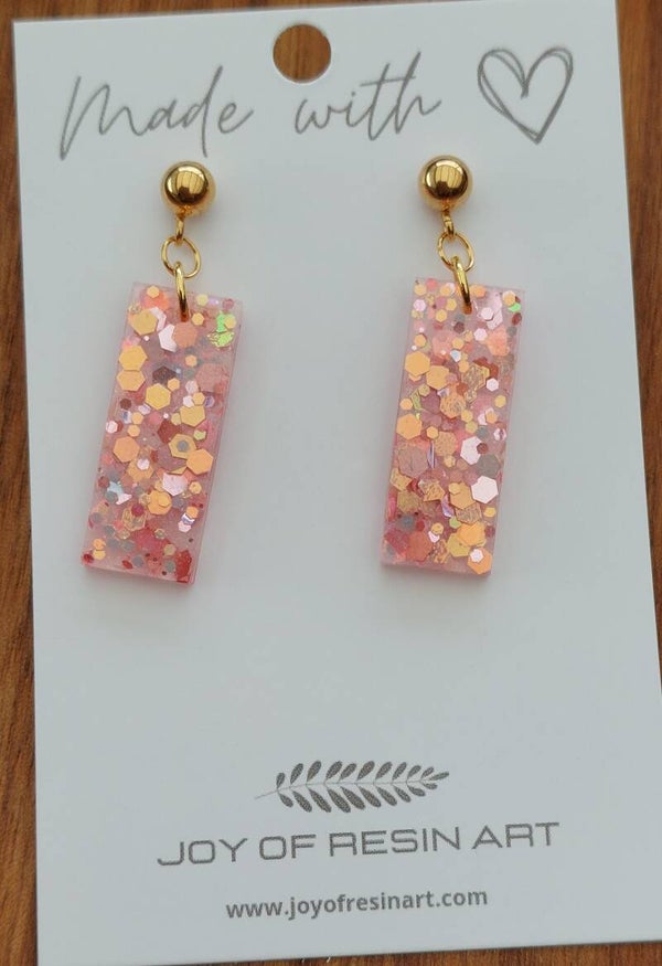 Kleine oorstekertjes met een klein rechthoekig hangertje.