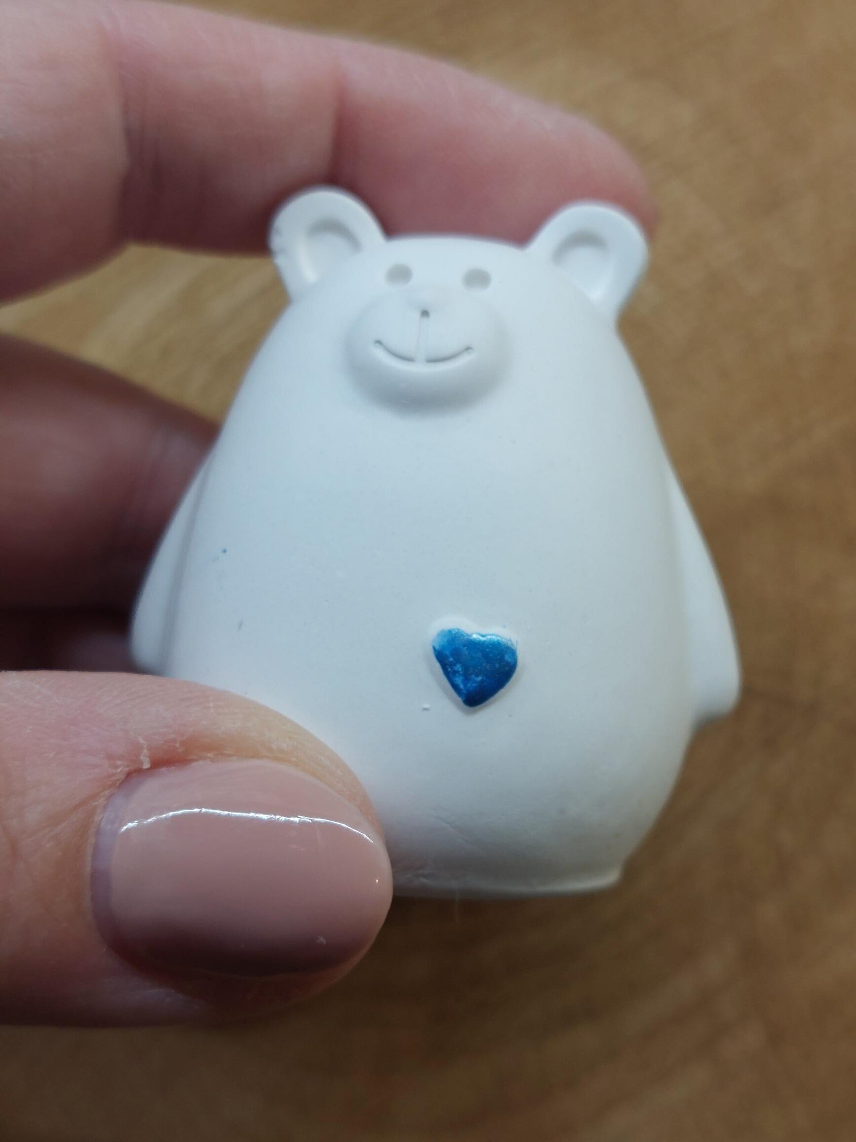 Het kan ook in andere kleuren of in Resin gemaakt worden. Ook het hartje kan in verschillende kleuren: je kiest dan 'beertje op aanvraag' en laat me in de opmerkingen weten wat je zou willen (bvb kleur hartje, kleur beertje, of eventueel in Resin). Voor een beertje op aanvraag moet je wel 3 dagen extra levertijd rekenen, per extra stuk dan nog + 1 dag.