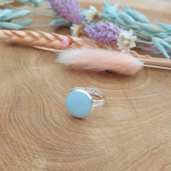 Mooie verstelbare ring in RVS, met een schitterende vulling in lichtblauw.