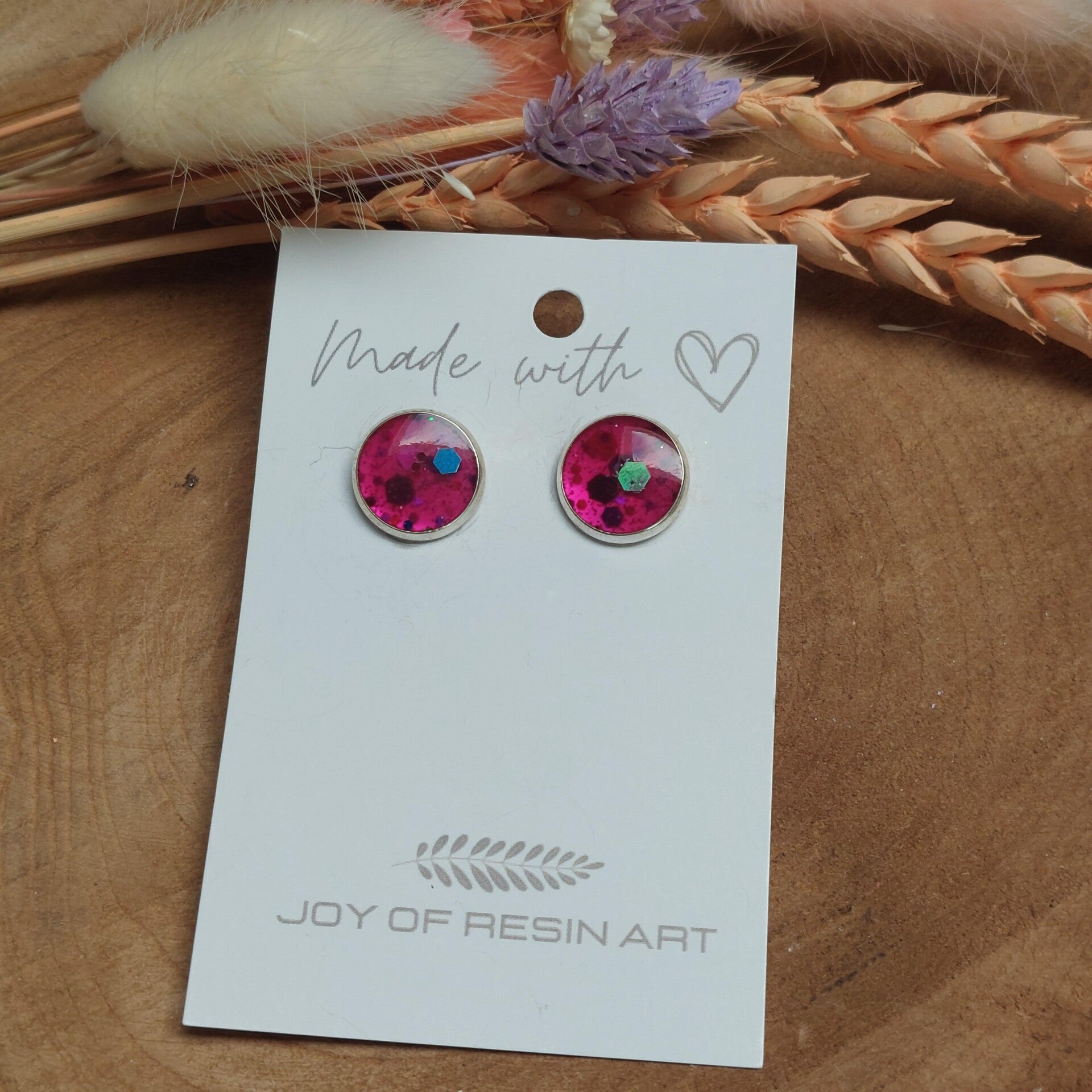Oorstekers DOTTI zilver/magenta glitter