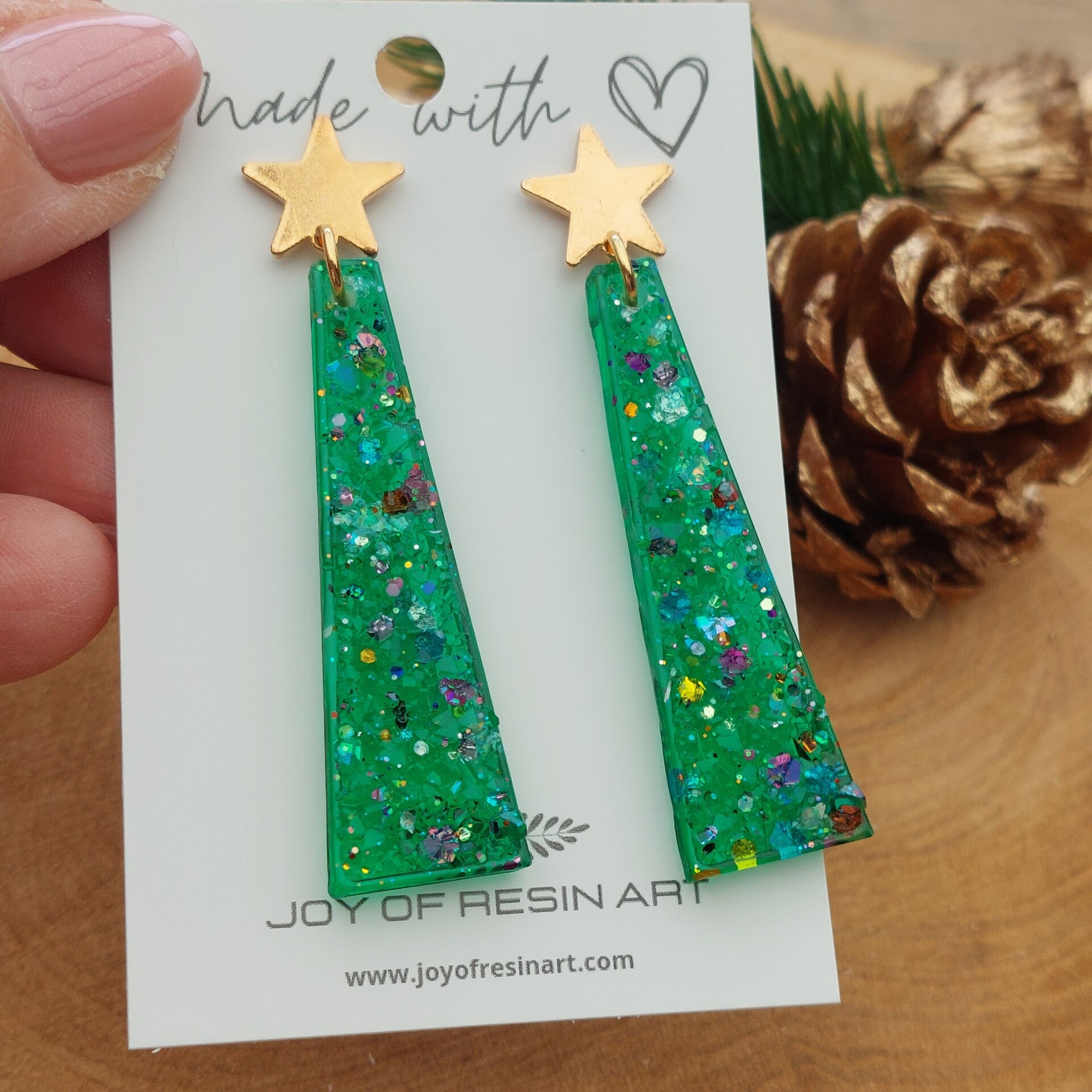Deze limited edition resin oorbellen brengen instant holiday vibes.