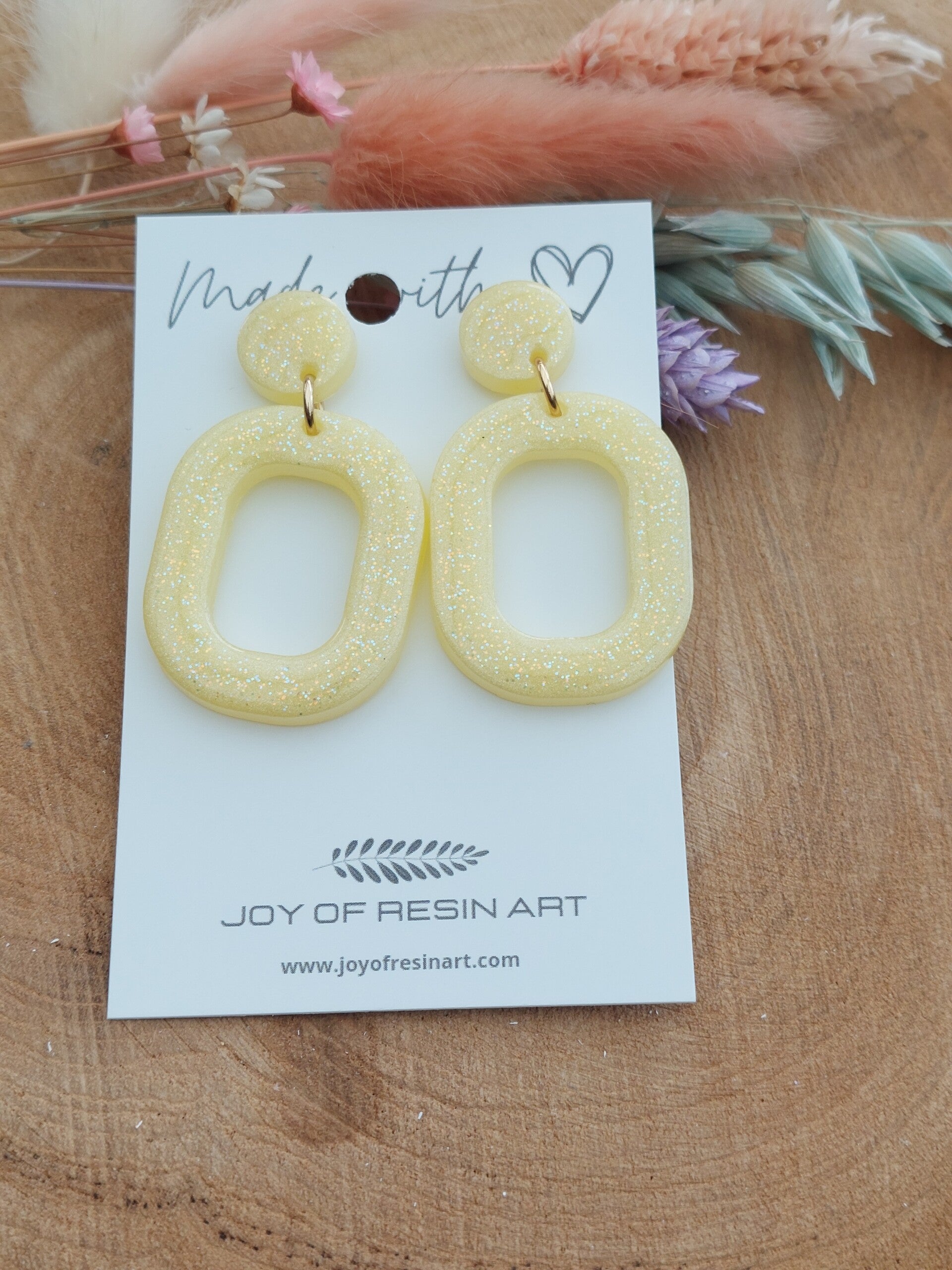 In dit zachtgeel met een glittertoets, draag je de zon in je oren!