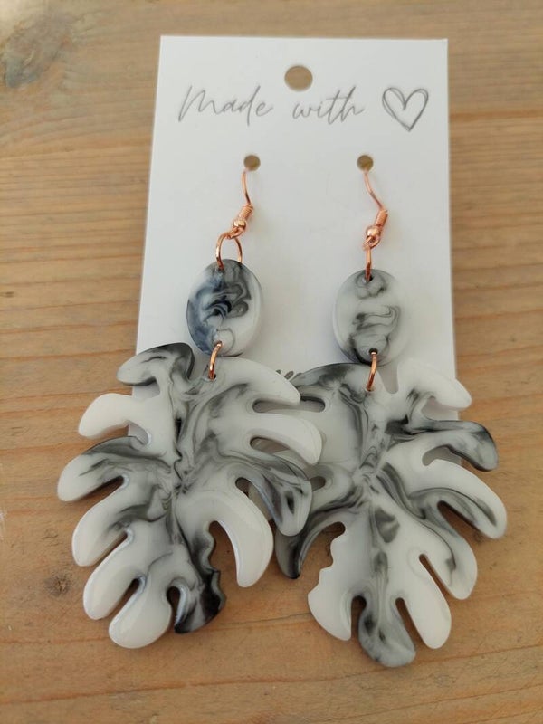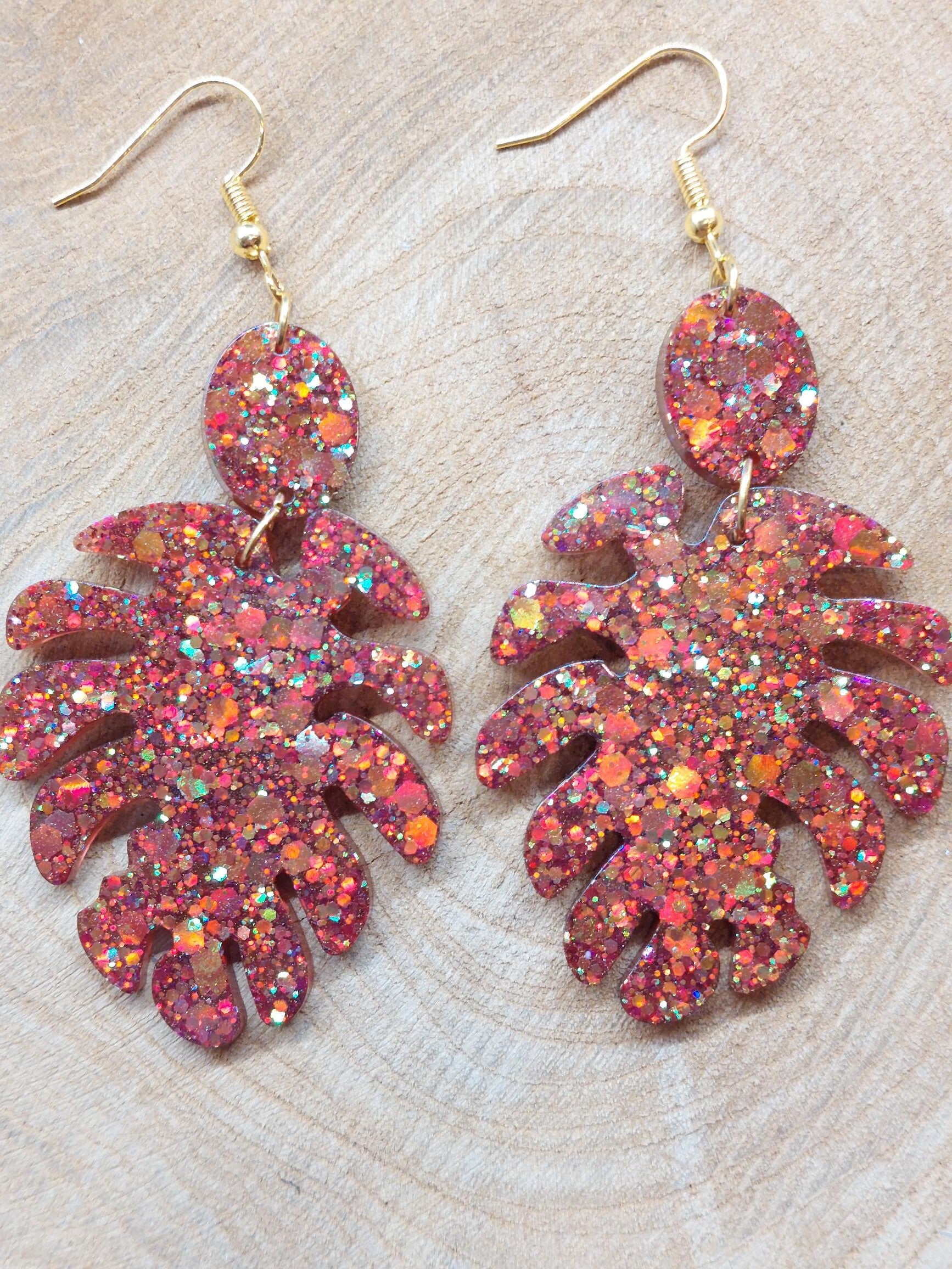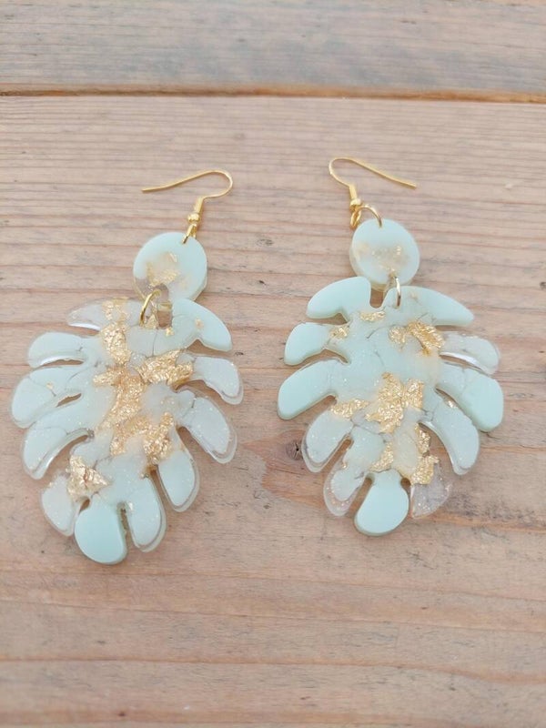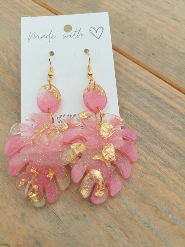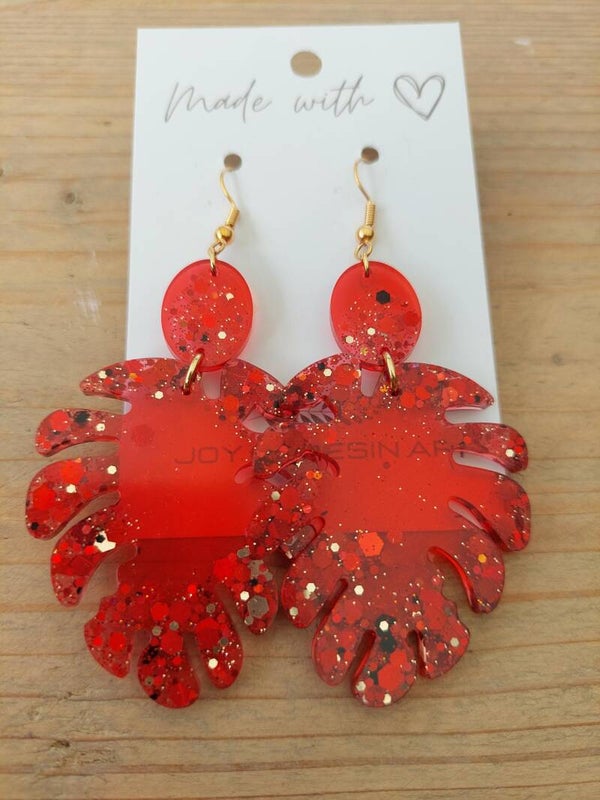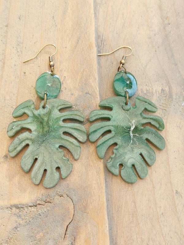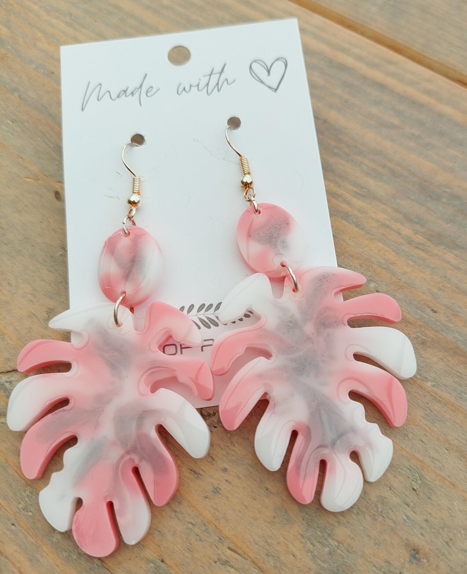 Mooie oorhangers met hanger in vorm van een Monstera blad