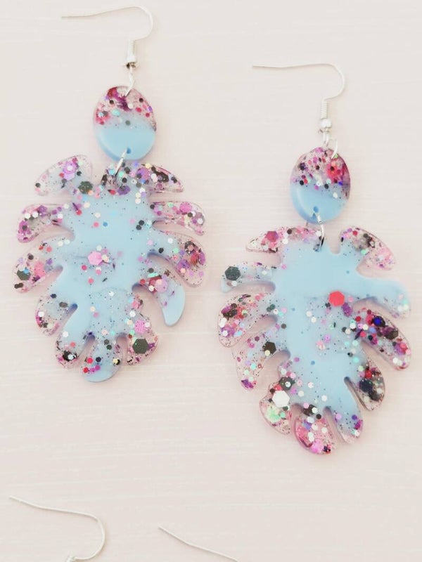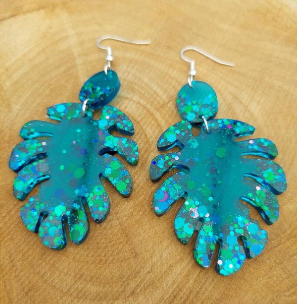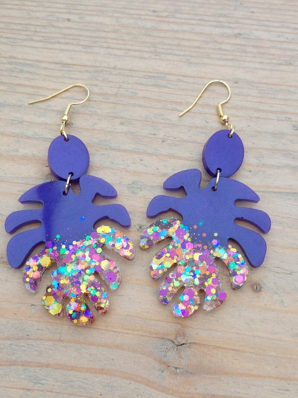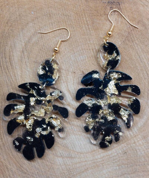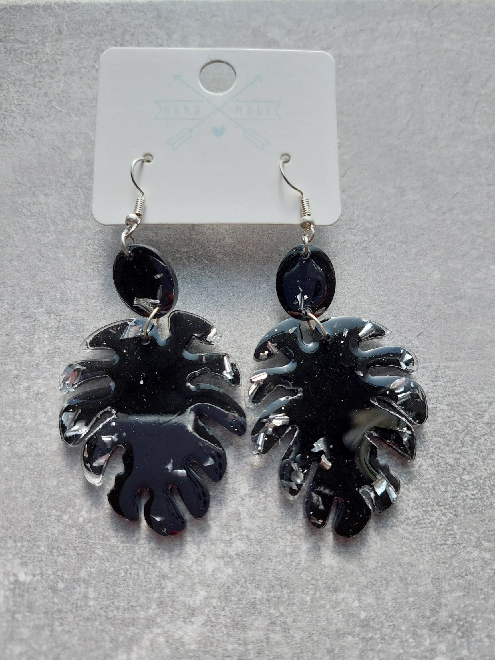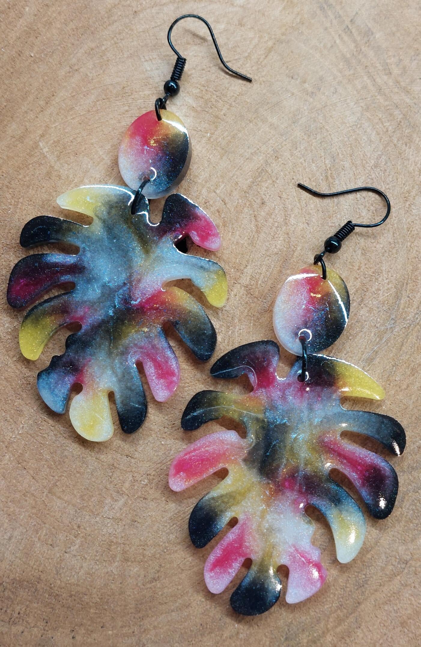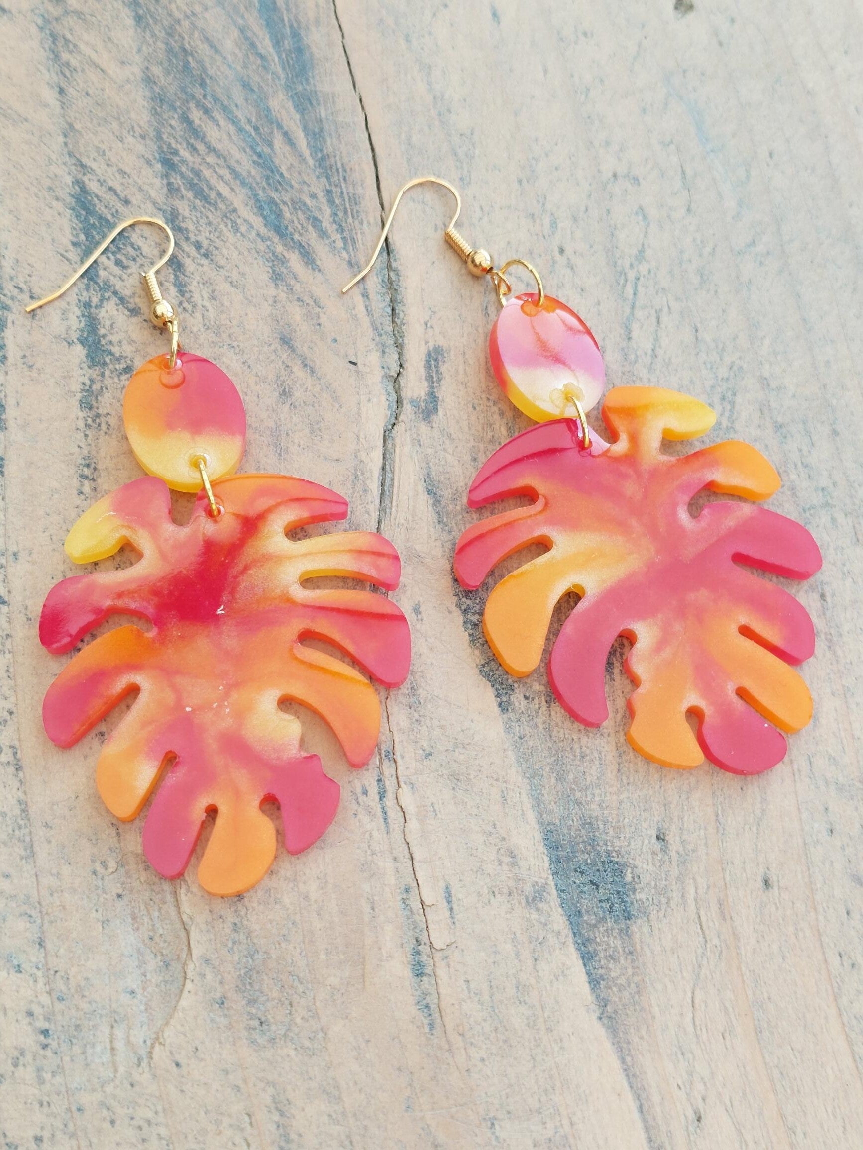 Mooie oorhangers met hanger in vorm van een Monstera blad