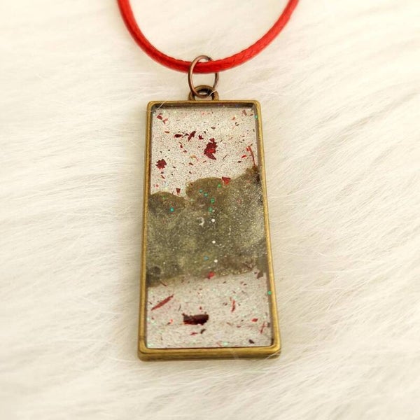 Hanger in 3 verschillende vormen, met bronzen kleurschakering en transparant met rode glittervlokken.